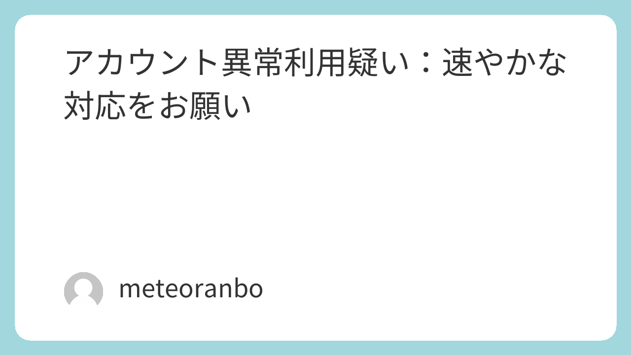 「アカウント異常利用疑い:速やかな対応をお願い」 というもの。