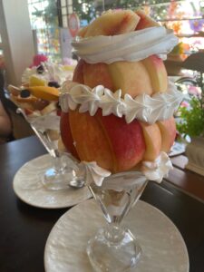 7月に毎年恒例となっている農園の絶品桃パフェ(ラ・ペスカさん)
